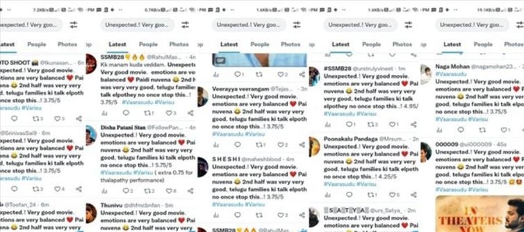 To compensate the negativity, dil Mafia and Vijay Mafia joined hands and have given the same template to tweet about the movie. Everyone started with the word 'Unexpected' and several twitter handles have posted the same review and no wonder dil Mafia and Vijay Mafia have been exposed by ajith fans this time. Vijay's shame continues with the release of Vaarasudu today and several reviews are negative.