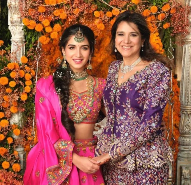 Radhika Merchant poses with her mother in Mehendi and looks beautiful in a custom-made booti embroidered dress. The season of weddings is here and we all are looking forward to some grand festivities this year. Well, now the name of businessman Mukesh Ambani and Nita Ambani's younger son Anant Ambani is going to be included in the list to join the married club, who is going to tie the knot with his fiancee radhika Merchant. All set to tie the knot. The two had a Roka ceremony on 29 december 2022, followed by a post-engagement party at their luxurious residence 'Antilia'. radhika Merchant had her Mehendi ceremony on 16th january 2023 and the pictures of the same are going viral all over the internet.
