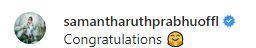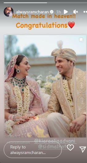 The main reason why Samantha's wishes got particular attention is she always keeps tight lipped and she maximum posts an instagram story and avoids posting in person in the comments section and this is the first time she has wished the newly married couple on their timeline feed. kiara who is romancing Mega power star also called the jodi as a Match made in heaven and shared an instagram story with their photo.
