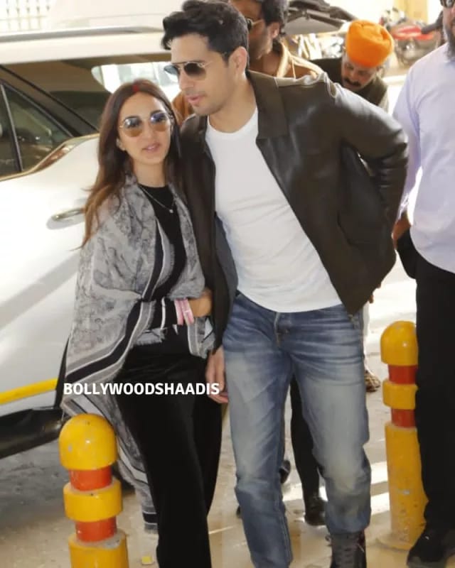The couple was spotted at the jaisalmer airport from where they left for Delhi. siddharth Malhotra and kiara advani appeared together at jaisalmer airport for the first time after marriage. During this, kiara looked very beautiful in a black tracksuit. Her bridal glow was adding to her beauty. She complemented her look with baby pink chuda, sindoor, and mangalsutra. At the same time, siddharth was wearing casual denim and a jacket, in which he was also looking very handsome. The couple will now go to Siddharth's house in delhi and complete the post-wedding rituals there. The newly married couple is also expected to host a reception in delhi tomorrow i.e. 9th february 2023, after which they will return to mumbai for another reception for their bollywood friends.