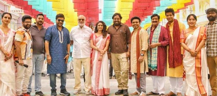 A song is now being filmed in hyderabad on a big kolkata set. 200 dancers would be seen swaying their legs with chiru and Keerthy Suresh. Today there was a special visitor on the set. During a visit to the sets, renowned director raghavendra RAO' target='_blank' title='k raghavendra rao-Latest Updates, Photos, Videos are a click away, CLICK NOW'>k raghavendra rao said it will be a bigger hit than Choodalani Vundi. It should be noted that raghavendra RAO' target='_blank' title='raghavendra rao-Latest Updates, Photos, Videos are a click away, CLICK NOW'>raghavendra rao once visited the filming location for Choodalani Vundi, which likewise had a kolkata backdrop. In the photo, KRR is visible alongside chiranjeevi, Keerthy Suresh, Meher Ramesh, sekhar Master, and many other actors.