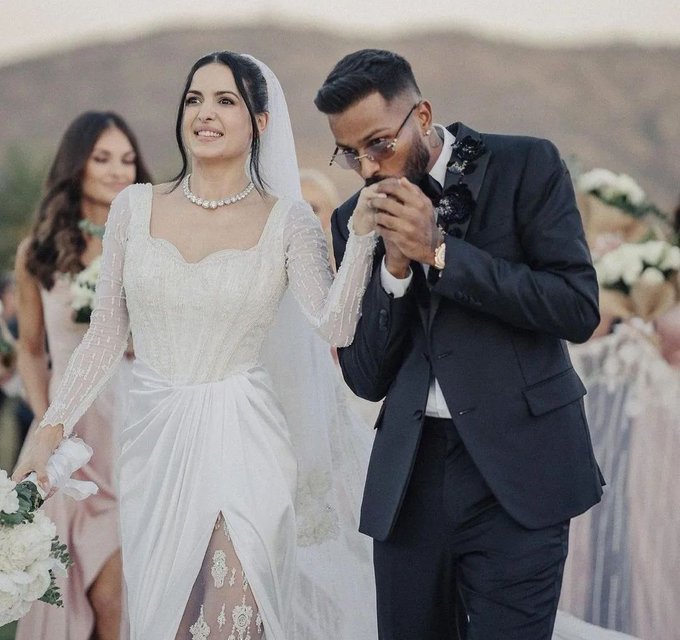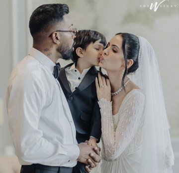 Indian cricketer hardik pandya and his actress-wife natasha Stankovic married Christian and Hindu rituals on Valentine's Day (2023). Its glimpses are still going viral on social media. Apart from this, Natasha's unique outfits at every function and her son Agastya's presence at her wedding and pre-wedding are winning hearts. Hardik-Natasha had a court marriage in the year 2020 during the pandemic and was blessed with a son, Agastya, on 30 July 2020. Now, the couple has shared some pictures from their cocktail party.