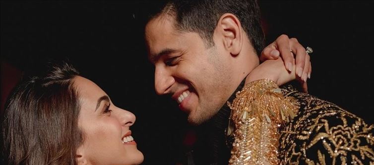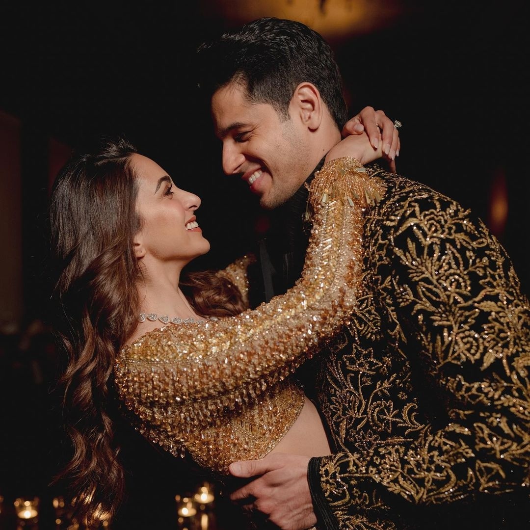 Sidharth Malhotra and kiara advani made millions of their fans happy by sharing adorable pictures from their sangeet night. The duo chose manish Malhotra outfits for the star-studded night and looked regal together. While kiara looked stunning in a golden lehenga, Sidharth looked handsome in a black sherwani and a long heavy embroidered jacket.
