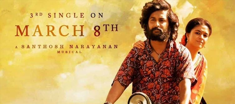 The movie chemistry between the two is depicted in the poster. Keerthy suresh is seated in the back seat of the motorbike while nani, who is wearing a vibrant blouse, is riding it. On both faces, a charming smile can be seen. Both appear unassuming, as befits their personas. The music was composed by santhosh narayanan for the film being directed by srikanth Odela under the auspices of SLV Films. On the 30th of this month, dasara will premiere on television.