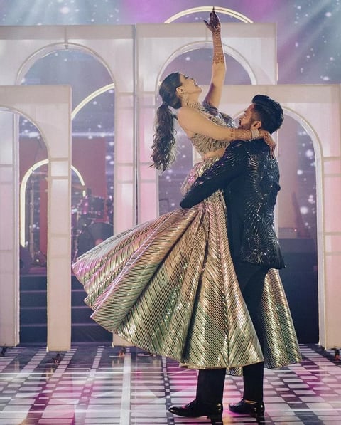 On 4 march 2023, shardul thakur posted a series of pictures from their reception on his instagram handle. In the pictures, the cricketer can be seen dancing and posing with his entrepreneur-wife Mithali Parulkar. While Shardul looked dapper as ever in a black outfit, it was his wife Mithali who wore a metallic lehenga teamed with a sleeveless choli and a ruffled dupatta draped over one shoulder. Along with the pictures, the cricketer wrote, "We danced till the sun went down, with our favorite people around, there was no reason to stop, what a glamorous night it was."