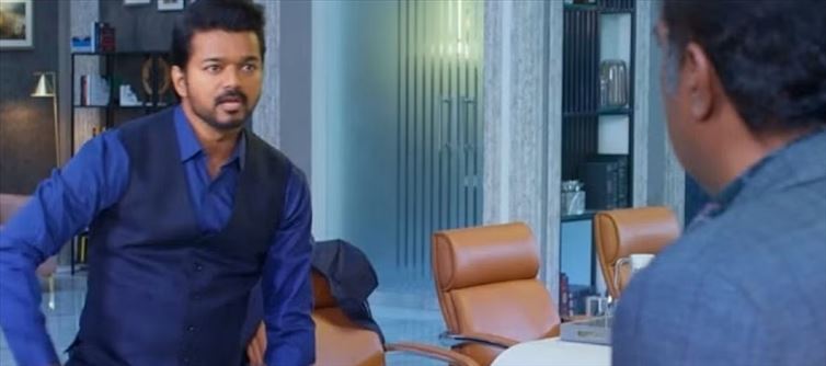 Arriving at Prakash Raj's office, Vijay is seen pleading with him to refrain from involving his family in his professional life and maintain the integrity of business. Once the adversary makes fun of him for it, Vijay issues a stern warning (with a hilarious nod to the pair's hit movie "Gilli") and leaves the office in style. Vijay's mannerisms are compared to transgenders in bus stand and netizens are trolling him.