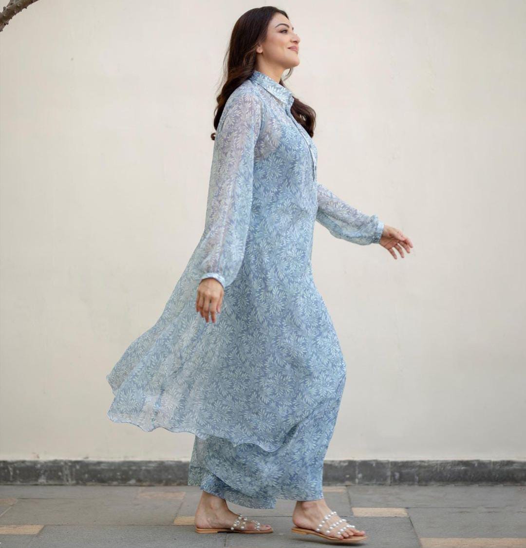ఇది ఇలా ఉంటే ఇప్పటికే సినిమాలతో ఎంతో మంది ప్రేక్షకుల మనసు దోచుకున్న ఈ ముద్దు గుమ్మ ఈ మధ్య కాలంలో సోషల్ మీడియాలో కూడా చాలా యాక్టివ్ గా ఉంటూ తనకు సంబంధించిన ఫోటోలను తన సోషల్ మీడియా అకౌంట్ లో పోస్ట్ చేస్తూ వస్తుంది. అందులో భాగంగా తాజాగా కాజల్ అదిరిపోయే లుక్ లో ఉన్న స్కై బ్లూ కలర్ డ్రెస్ ను వేసుకొని డిఫరెంట్ డిఫరెంట్ యాంగిల్స్ లో ఫోటోలకు స్టిల్స్ వచ్చింది. ప్రస్తుతం కాజల్ కు సంబంధించిన ఈ స్కై బ్లూ కలర్ డ్రెస్ లో ఉన్న ఫోటోలు సోషల్ మీడియాలో అదిరిపోయే రేంజ్ లో వైరల్ అవుతున్నాయి.