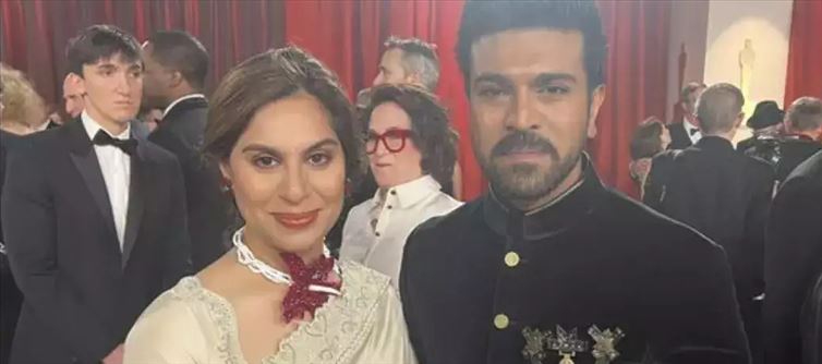 For the 95th Academy Awards ceremony, upasana wore an ivory saree while Charan wore a black bandhgala. On the red carpet, the couple appeared sophisticated. The Oscars 2023 event was attended by Jr. NTR, his wife Pranati, SS Rajamouli, Rama Rajamouli, music composer MM keeravani, his wife Srivalli, Rajamouli's son SS kartikeya Koduri, singer Kaalabhairava, vocalist rahul sipligunj, and lyricist Chandrabose. On the Oscars dais, keeravani and chandrabose delivered the winning speeches.