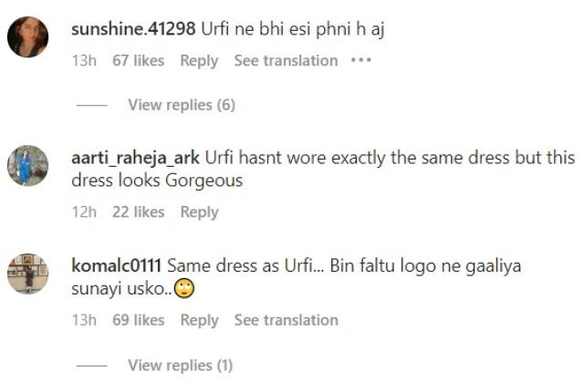 "Isne urfi ka outfit churaya ya usne iska," one of the users of the internet wrote. The words of another user, "Similar clothing as Urfi... I lack a logo, and it's sunny outside.
