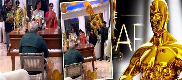 ఆస్కార్ ఆనందాలని ఆస్వాదిస్తూ ఫుల్ ఎంజాయ్ చేశారు. ఇక మెగా పవర్ స్టార్ రామ్ చరణ్ భార్య ఉపాసన వీటికి సంబంధించిన ఫోటోలు వీడియోలను తన సోషల్ మీడియా వేదికగా షేర్ చేశారు .ఇక అభిమానులు ఈ ఫోటోలు వీడియోలు చూసి ఫుల్ ఖుషి అవుతున్నారు .వీటిలో ఒక వీడియోలో కీరవాణి పియానో వాయిస్తూ ఉండగా మిగతా నటినట్లు అంతా ఉత్సాహంగా దాని వింటున్నారు. మరో వీడియో క్లిప్ లో రామ్ చరణ్ ఆస్కార్ గెలుచుకున్న అవార్డుతో పాటు ఇతర అవార్డులతో ఫోజులిచ్చాడు. ప్రస్తుతం నెట్టింట ఈ ఫోటోలు వీడియోలు ఉన్నాయి .మొత్తం మీద త్రిబుల్ ఆర్ హాలీవుడ్ ఆడియన్స్ సైతం ఆకట్టుకుని గోల్డెన్ గ్లోబ్ అవార్డును గెలుచుకోవడంతోపాటు ఆస్కార్ అవార్డుతో సరికొత్త ప్రభంజనాన్ని సృష్టించింది. ఇక ప్రస్తుతం రాజమౌళి సూపర్ స్టార్ మహేష్ బాబుతో సినిమా చేస్తున్న విషయం తెలిసిందే.