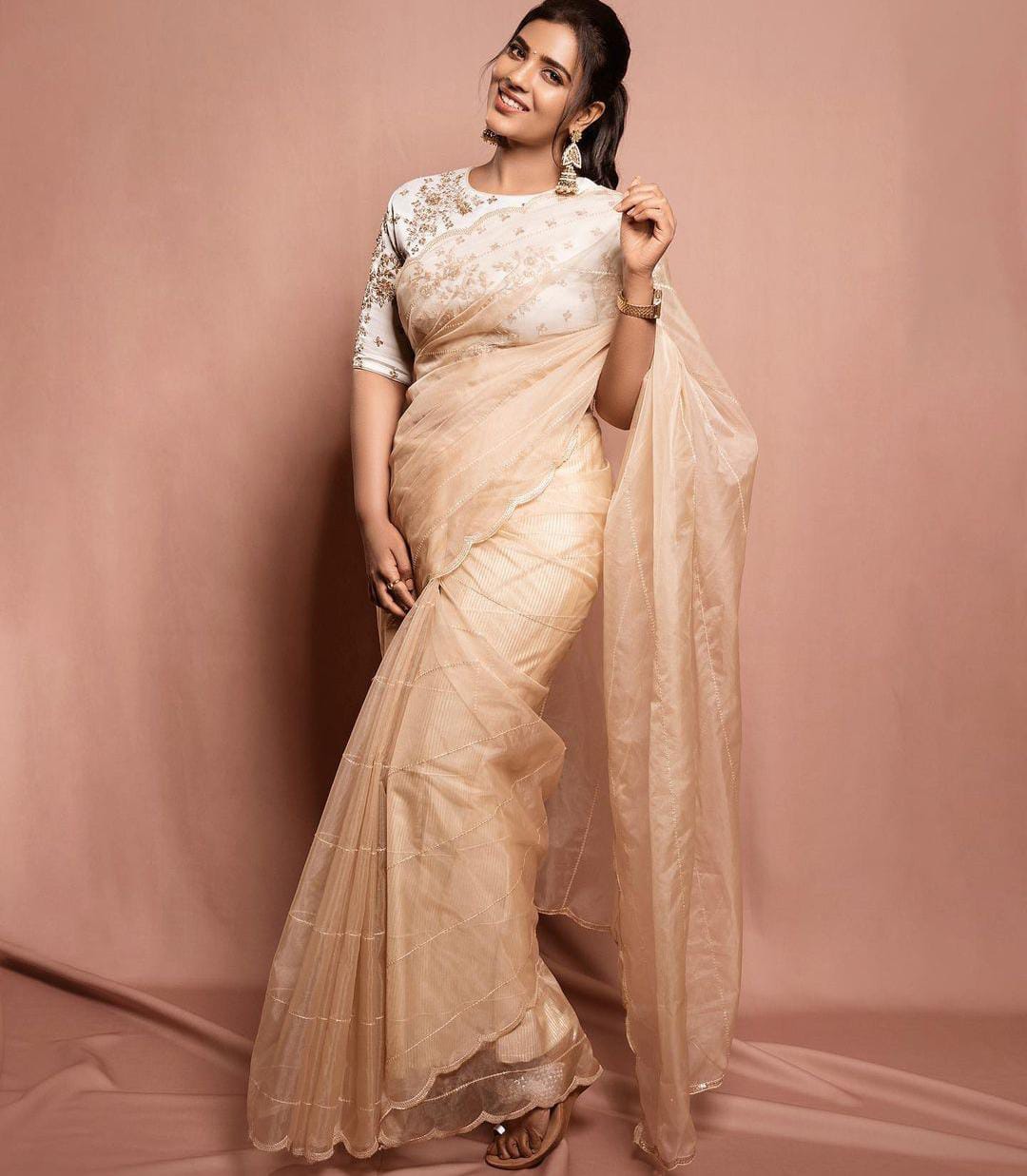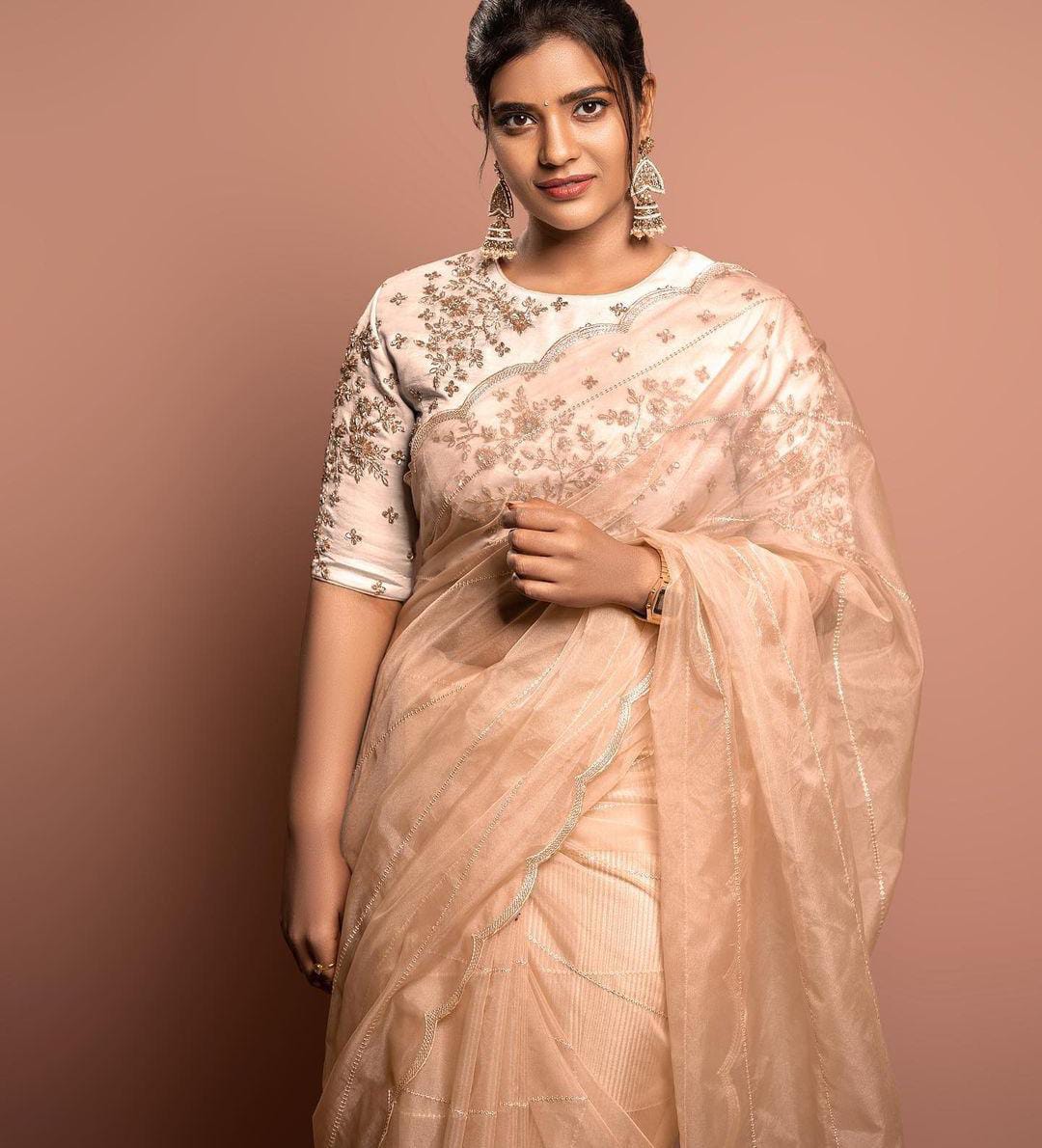 ఇది ఇలా ఉంటే సినిమాలలో చాలా పద్ధతిగా పాత్రలలో నటిస్తూ కెరియర్ ను ముందుకు సాగిస్తున్న ఈ ముద్దుగుమ్మ సోషల్ మీడియాలో కూడా తనకు సంబంధించిన పద్ధతి గల ఫోటోలను ఎప్పటికప్పుడు పోస్ట్ చేస్తూ ప్రేక్షకులను అలరిస్తోంది  అందులో భాగంగా తాజాగా కూడా ఈ ముద్దుగుమ్మ తనకు సంబంధించిన కొన్ని ట్రెడిషనల్ లుక్ లో ఉన్న ఫోటోలను తన సోషల్ మీడియా అకౌంట్ లో పోస్ట్ చేసింది. తాజాగా ఐశ్వర్య అదిరిపోయే లుక్ లో ఉన్న చీరను కట్టుకొని అందుకు తగిన బ్లౌజ్ ను ధరించి చాలా క్లాస్ అండ్ ట్రెడిషనల్ లుక్ లో ఉన్న ఫోటోలను తన సోషల్ మీడియా అకౌంట్ లో పోస్ట్ చేసింది. ఈ ఫోటోలు ప్రస్తుతం సోషల్ మీడియాలో వైరల్ అవుతున్నాయి.