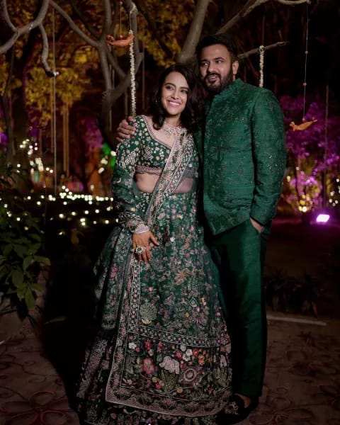 After tying the knot, both of them held a wedding reception in Delhi. It was attended by many others including congress leader rahul Gandhi, Shashi Tharoor, TMC leader Derek O'Brien and actress Jaya Bachchan. A Walima ceremony was also held in the city, where Swara wore a bridal lehenga by a Pakistani designer.