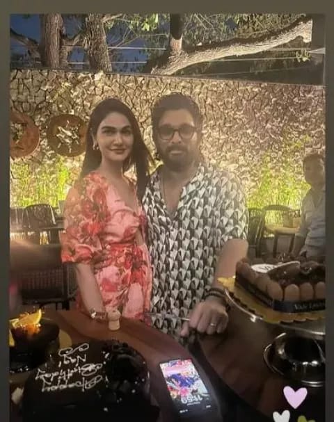 Allu Arjun's loving wife sneha took to her twitter handle and shared a selfie with the birthday boy and also shared glimpses of the celebrations. Where the actor was looking handsome in a casual outfit. Whereas, sneha opted for a peach-colored floral dress.