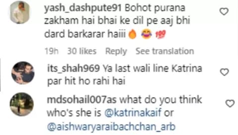 Salman further added, “I think 'Jaan' is an incomplete sentence. The full sentence should be 'I will kill you, after that, I will make someone else my life, then I will take his life too'." As soon as salman finished speaking, everyone from Kapil to the show's judge archana puran singh started laughing. After this video of salman surfaced, netizens are speculating that the actor took a jibe at his ex-girlfriends aishwarya Rai and katrina kaif without naming them. A netizen wrote, "This last line is hitting Katrina." Check out the screenshots of the comments here.