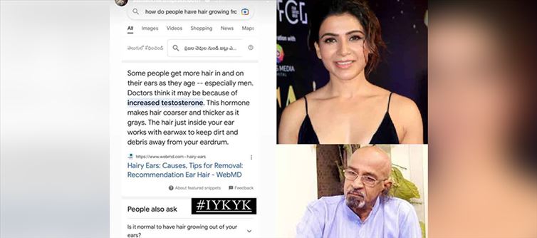 In response, samantha posted a screenshot of a google search for "how do people have hair growing from ears" on her instagram story. Increased testosterone may be the cause, according to the search results. samantha posted the image with the hashtag "#IYKYK," which stands for "If You Know, You Know," to draw attention to Chittibabu's thick hair growth next to his ears.