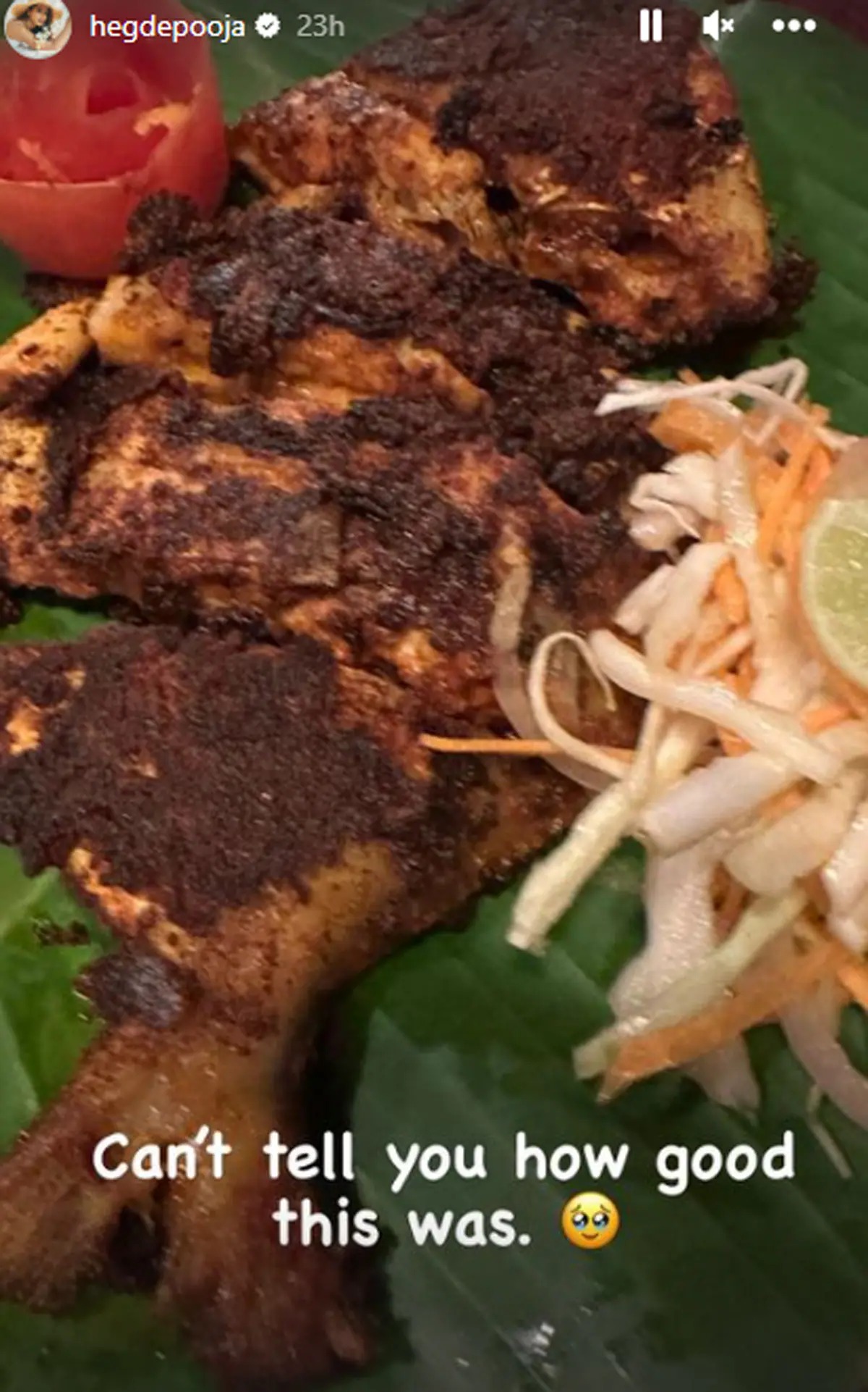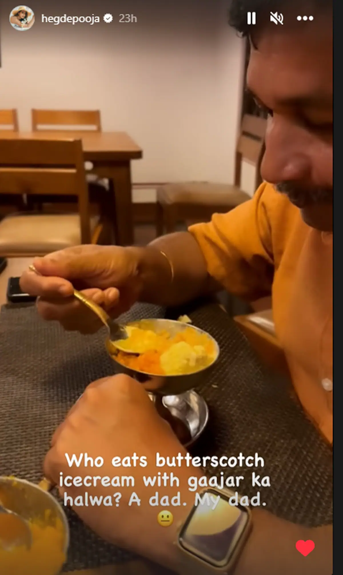 She uploaded snippets from her pejakai-picking session, moments with her father, a video of her pet Brownie, and the meals she had in a separate post. pooja hegde was decked out in a festive blue outfit. The actress also uploaded a photo of herself taken while flying. The post's caption was "A quick trip to mangalore and a quick hunt for pejakai," written by pooja Hegde.