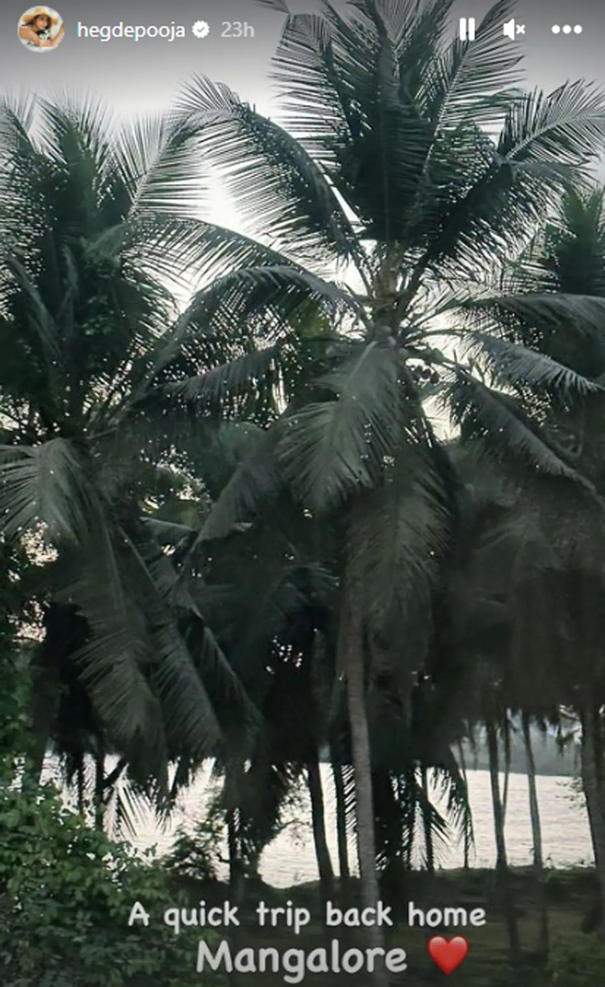 Pooja Hegde, whose calendar has been quite busy, took a "quick trip" back home. After the movie's release, the actress, who had recently been busy with Kisi Ka Bhai Kisi Ki jaan marketing, flew to mangalore and shared snippets on her instagram account. "A quick trip back home," she stated while posting a photo of her mangalore home.