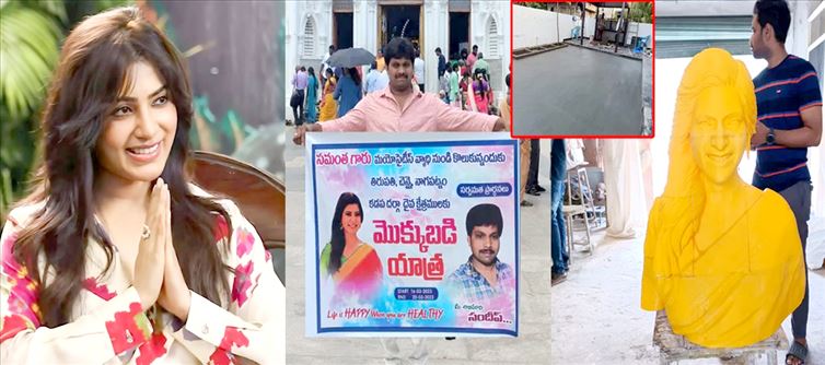 ఈ క్రమంలోని సమంత మానవత్వానికి ఫిదా అయిపోయాడు ఒక వీరాభిమాని. సమంతపై తనకి ఉన్న అభిమానంతో ఏకంగా సమంతకి గుడి కట్టాడు ఆ అభిమాని. ఆంధ్రప్రదేశ్ లోని బాపట్ల జిల్లా చుండూరు మండలం అలపాడుకు చెందిన తెనాలి సందీప్ అనే ఒక యువకుడు సమంతా కి పెద్ద అభిమాని. ఆమె నటనతో పాటు తన సేవా కార్యక్రమాలకు ఫిదా అయిన ఆయన ఏకంగా సమంతకి గుడి కట్టాడు. అయితే ఎందరో అనారోగ్యం పాలైన చిన్న పిల్లలకు సమంత పునర్జన్మ ఇవ్వడంతో తనపై ఉన్న అభిమానం మరింత ఎక్కువ అవ్వడంతో సమంతకి ఏకంగా గుడి కట్టాలని నిర్ణయించుకున్నాడు ఆ అభిమాని.