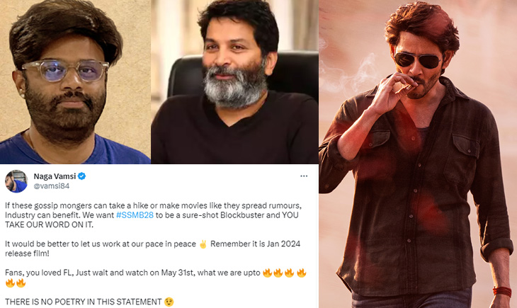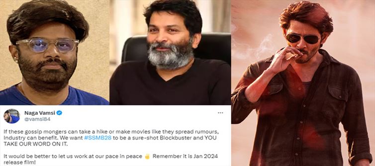 వినిపిస్తున్న సమాచారం ప్రకారం.. ఇందులో హీరోయిన్గా పూజా హెగ్డే వద్దని మ్యూజిక్ డైరెక్టర్గా తమన్ వద్దని మహేష్ చెప్పినప్పటికీ త్రివిక్రమ్ తనని కన్విస్ చేశారని వార్తలు వినిపిస్తున్నాయి. స్క్రిప్ట్ విషయంలో కూడా పలు మార్పులు చేయమని మహేష్ చెప్పిన కూడా త్రివిక్రమ్ వాటిని లైట్ తీసుకున్నట్లు సమాచారం. అయితే తాజాగా నిర్మాత నాగవంశీ ఇలాంటి రూమర్ల పైన చెక్ పెడితే ఒక ట్వీట్ ని షేర్ చేయడం జరిగింది. ఈ సినిమా మొదటినుంచి ఇబ్బందులు ఎదుర్కొంటూనే ఉంది. మహేష్ వ్యక్తిగత జీవితంలో ఎదురైన కొన్ని సంఘటనలు ఈ సినిమా ఆలస్యానికి కారణము.. అందుచేతనే ఈ సినిమా అనుకున్నంత వేగంగా ముందుకు వెళ్లలేకపోతూ ఉండడంతో ఈ సినిమా పైన రూమర్లు పెరిగిపోయాయి.