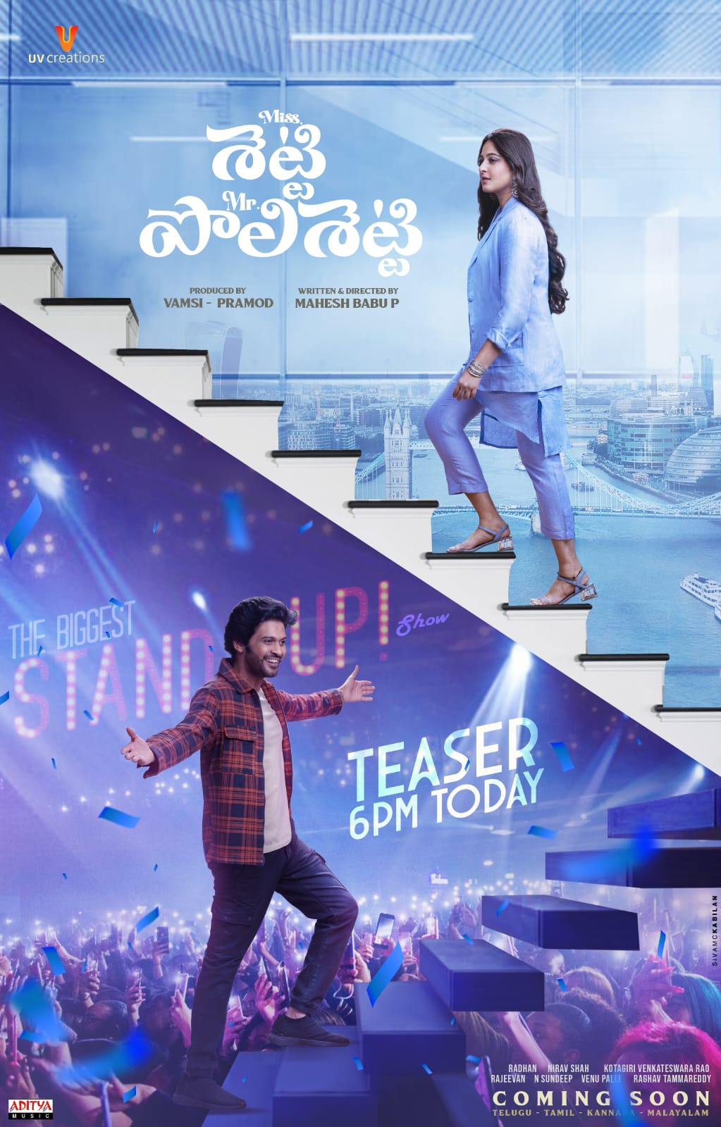 ఈ మూవీ కూడా అదిరిపోయే రేంజ్ బ్లాక్ బాస్టర్ విజయం సాధించడంతో నవీన్ పోలిశెట్టి క్రేజ్ తెలుగు సినిమా ఇండస్ట్రీలో అమాంతం పెరిగి పోయింది. తాజాగా నవీన్ మిస్ శెట్టి మిస్టర్ పోలిశెట్టి అనే మూవీ లో హీరో గా నటిస్తున్నాడు. ఈ మూవీ లో అనుష్క హీరోయిన్ గా నటిస్తోంది. మహేష్ బాబు పి ఈ మూవీ కి దర్శకత్వం వహిస్తున్నాడు. ఇది ఇలా ఉంటే నిన్న ఈ సినిమా యూనిట్ ఈ మూవీ నుండి టీజర్ ను ఈ రోజు విడుదల చేయనున్నట్లు అధికారికంగా ప్రకటించిన విషయం మనకు తెలిసింది.