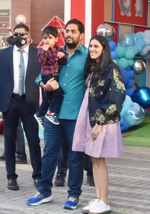 Prithvi Ambani would have turned two on 10 december 2022, but due to some reasons the party was not organized for him then, but on 2 january 2023, akash Ambani and Shloka Mehta hosted a grand birthday party for their son Prithvi. It was At the penguin-themed 'Winter Wonderland' birthday bash, akash looked handsome in a teal blue casual shirt and jeans, while Shloka looked cute in a simple striped skater dress.