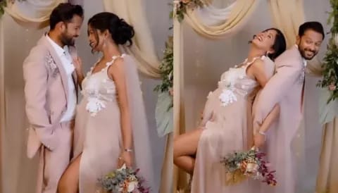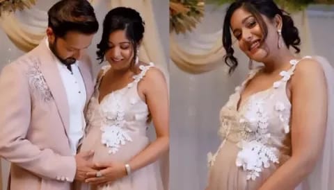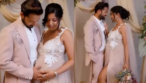 Ishita Dutta flaunts her baby bump in a flowy gown for a maternity shoot with her husband Vatsal