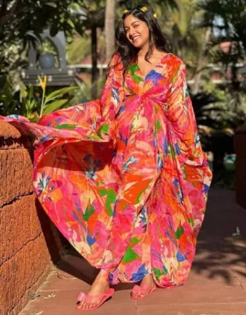 Ishita Dutta and Vatsal Seth announced their first pregnancy on 31st march 2023 with an adorable picture from their babymoon in Goa. The picture featured the parents posing with each other in matching green-colored outfits with pink prints. While ishita wore a noodle strap bodycon dress, Vatsal wore a printed shirt and white pants. In the picture, Vatsal was kneeling and kissing his wife ishita's baby bump