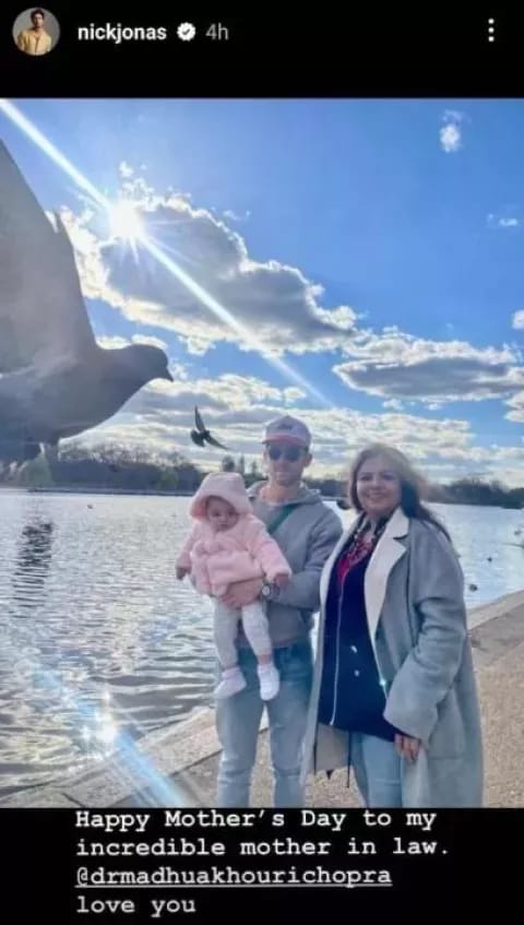 Nick is indeed a loving son and son-in-law, the proof of which can be seen from his social media handles. For example, Nick also wished his mother Denise Jonas, and mother-in-law Madhu Chopra on Mother's Day. He shared old pictures on his insta story. In his first story, he was seen posing with Denise and the two were looking cute together.