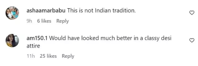 While Isha's fans are not tired of praising her seeing her style, some netizens did not like this bold outfit of Isha at all and started trolling the actress. "This is not an indian tradition," wrote a social media user, while another called it "nonsense". Another netizen claimed Isha's surgery and wrote, "What is the need for extravagant Cosmo (cosmetic) surgery, earlier it looked good too." Check out the screenshots of the comments here.