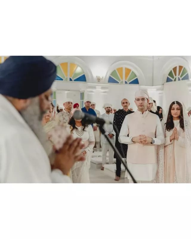 Parineeti Chopra has shared some pictures of Ardaas Ceremonies which took place on the day of her engagement on 18th May 2023 from her instagram account. In the photo, we can see the couple sitting together, completely engrossed in the Gurbani. In the first photo shared by Parineeti, we can see Singh Sahib Giani Harpreet Singh, from whom the couple is seen taking blessings.