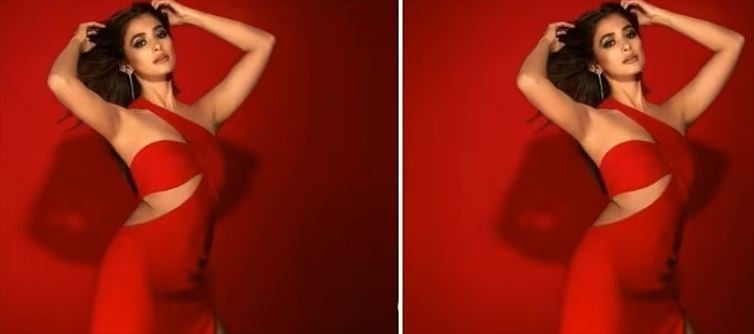 Pooja served as a muse for the fashion label Monot, choosing the stunning red gown from its racks. pooja was dressed in a vivid red gown with off-the-shoulder features, a wrap around her neck, and a cut-out on one side of the waist. Pooja's dress fell to a lengthy skirt with a thigh-high cut, exposing her midriff. pooja captioned her photos with "Where's the matchstick because I'm about to set this world on fire."