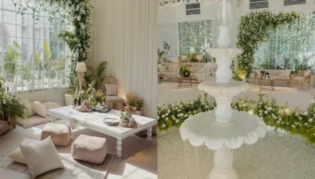 The venue of actress parineeti chopra and Raghav Chadha's engagement in delhi was decorated with greenery and white flowers. Bollywood actress parineeti chopra and 'Aam Aadmi party leader Raghav Chadha got engaged on 13 May 2023. The ceremony was held at Kapurthala house in New delhi, which was attended by close friends and family of the couple including priyanka Chopra. For this special occasion, designer manish Malhotra decorated Parineeti and Raghav in the best outfits. Now the designer's company has shared some pictures of Parineeti and Raghav's beautiful engagement venue.The guest list for Parineeti and Raghav's engagement was restricted to only close family members and friends, but the same cannot be said about the decorations. The venue Kapurthala house was lavishly decorated for the event.