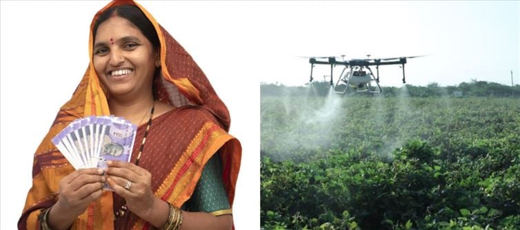 దీని ద్వారా కేంద్రం ఇచ్చే డ్రోన్లతో మహిళా రైతులు పొలాలలో ఎరువులను చెల్లించవచ్చని..2023-24 ఆర్థిక సంవత్సరం నుంచి..2025-26 వరకు కేంద్ర ప్రభుత్వం వీరికి డ్రోన్లను అందిస్తుందట. దీని ద్వారా ఎరువులు ఎలా పిచికారి చేయాలని ట్రైనింగును కూడా ఇస్తుందట. తద్వారా నెలకు పదివేల రూపాయల చొప్పున లక్ష వరకు ఆదాయాన్ని అందించే విధంగా ఉంటుందట.. ఈ డ్రోన్ కెమెరాతో శిక్షణతో పొందిన మహిళలు స్వయంగా సహాయక బృందాలు వారి పొలాలతో పాటు ఇతర పొలాలకు కూడా ఎరువులను ఎలా పిచికారి చేసుకోవచ్చు అయితే ఈ డ్రోన్ ఖర్చులు 80 శాతం వరకు ఉపకరణ ఉంటుందట.. అలాగే ఇతరత్న చార్జీలు లేకుండా ఎనిమిది లక్షల వరకు కేంద్ర ప్రభుత్వం ఆర్థిక సహాయాన్ని చేస్తుండట.. మిగిలిన మొత్తాన్ని అగ్రికల్చర్ ఇన్ఫ్రా ఫైనాన్స్ కింద రుణాన్ని మంజూరు చేస్తాయట. ఈ మొత్తం పైన మూడు శాతం వడ్డీ రాయితో కూడా లభిస్తుంది.
