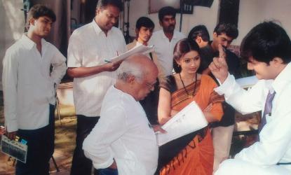 Most of movie buffs know that hero Nani made his debut in the movie industry in the direction department as a clap assistant for the great director Bapu for 'Radha Gopalam' movie. Young man holding a clap board and concentrating on how director Bapu is explaining a scene is hero Nani, this rare pic is circulating viral in all social networking sites from few hours.