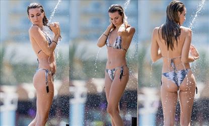Rachel is the younger sister of Anna Lynne and she opted for a flesh-flashing monochrome bikini. The actress also showcased her flat tummy and little legs to everyone's viewing pleasure.