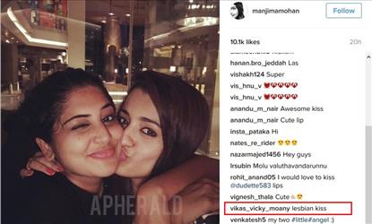 But Nagachaitanya's current girl friend Manjima Mohan shared a 'HOT KISS' between Trisha and herself and the 'Lesbian Kiss' is going viral on social media. Every fan commented about it. However Manjima kept muted response.