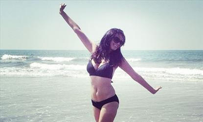 OMG the bikini beauty is damn hot woth two piece having fun in sea shore posing extra hot crazily.