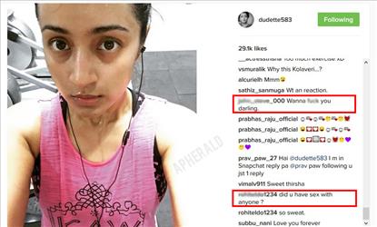 Now for that sweat pic, fans started asking some cheap comments like, "Did you had se* with anyone?" "Need to *** you.. !" and so on. The actress after deleting few started to ignore those as most of them had such shameful perverted mind.