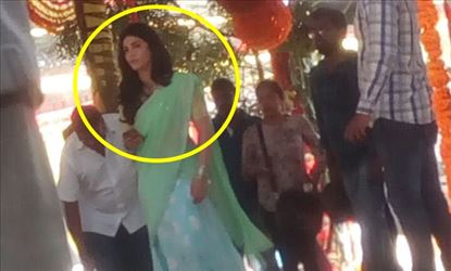 Pawan Kalyan and Shruti Haasan are working in full swing to complete 'Katamarayudu' at the earliest. The team is shooting the climax portions at a hugely erected temple set. Shruti Haasan was spotted in a green transparent half saree.
