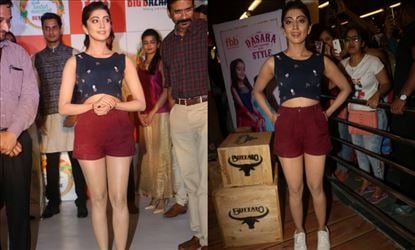 Pranitha Subash has sported a thigh-revealing short at Big Bazaar Navaratri collections launch and grabbed all the eyeballs. The actress who attended the event stunned the Paparazzi with such an outfit and posed for the shutterbugs!