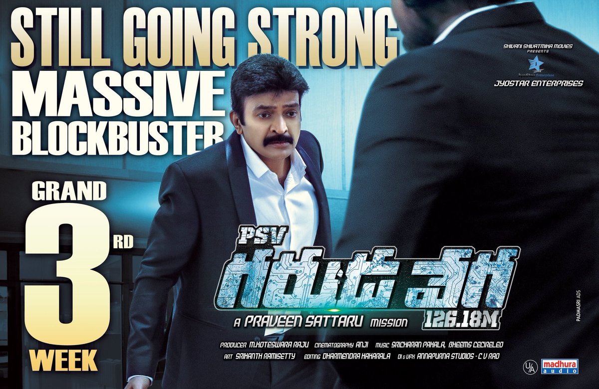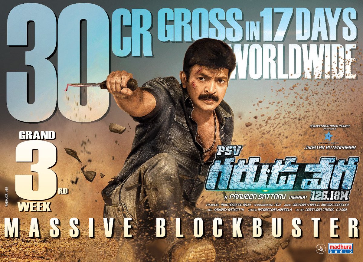 The movie has also entered into 15 films in the USA Box-Office. As per trade reports, 'PSV Garduda Vega' has reaped profits for the theatre owners and distributors more than lead actors Pawan Kalyan, Mahesh Babu, Junior NTR and Allu Arjun. Recently, Gemini TV bagged the satellite rights for a whopping 4 Crores amount.