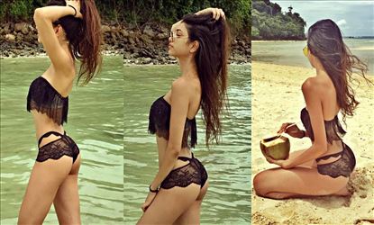 However, she has already made waves and has bagged enough fans and followers thanks to Sensuous and erotic two piece bikini pics posted on her Instagram account. With ample display of curves and sizzling bootylicious beach body in tiny bikinis, she's already set desktops, laptops, and Mobiles on fire, and is all set to make the hottest debut on screen with another skimpy show.