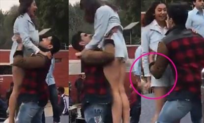 Sid wanted to flaunt the chemistry and he lifted her before the crowd and Rakul who was surprised and never anticipated was pulling her dress down. Rakul smiled desperately to avoid more embarrassment before the cameras. You can watch the video below,