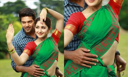 In this case, the team recently revealed some of the stills from the movie to keep the audience excited and we can see Sayyeshaa exposing her sexy fleshy belly in a Bharatanatyam Saree. She definitely knows to tease the youngsters' mind. Take a look at the latest stills below,