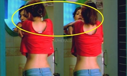 As you can see from the above photo, a hot edited scene of Kajal has been added in 'Unrated' version in a Home DVD and now it is going viral. Kajal Aggarwal is seen stripping her tops before a mirror and we can see those hot curves. She just raises the heat to whole new level.