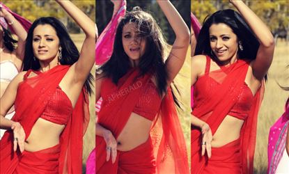 Now, we bring you red hot photos of Trisha where she has exposed her deep navel and tempting hot features in Saree. She's quite a treat to watch and these photos will definitely bring your inner desires out. Take a look at the photos below,
