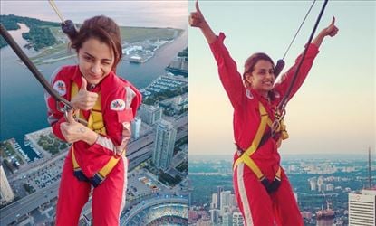 The actress is currently in Ontario, Canada and she is having a gala time. The actress who completed the Award show event is having some personal alone time and she had some adventure going on. The actress was seen above 1164 Feet Sea level. Well, you can take a look at the photos below,