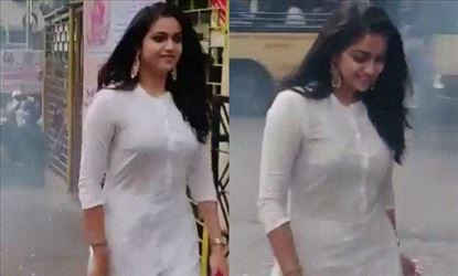 Now, Keerthy Suresh works for 'Sarkaar' shooting and recently some photos of Keerthy in White Transparent Chudi top were leaked. The scene was shot in Chennai where Keerthy should walk amidst the crowd and the cameras were kept hidden. Now, we bring you some photos of that shooting event,