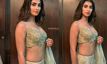 Recently, Pooja Hegde attended Deepika Padukone — Ranveer Singh reception at Mumbai and she grabbed eyeballs of the cameras by wearing choli in the sexiest way and she was just making everyone go gaga. Take a look at the photos below,