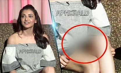 Now, an interview of Kajal Aggarwal is doing rounds on WhatsApp and Social media as it shows Kajal facing an Oops! moment. We are not sure when this interview happened, but Kajal seems to be embarrassed and she quickly switches to Cross-legged fashion to avoid cameras.